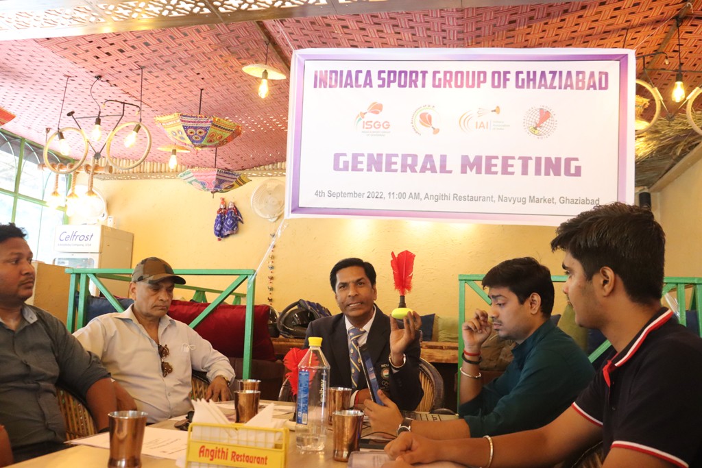 To the development of Indiaca Sport in Ghaziabad District (Uttar Pradesh) a General Meeting of Indiaca Sport Group of Ghaziabad has been called on 4th September 2022 at Angithi Restaurant, 72, Navyug Market, Ghaziabad Uttar Pradesh. Many Physical Education Teachers, Sports Promoters and Sports Administrators have joined the meeting and shared their valuable thoughts for the betterment of the Indiaca.
